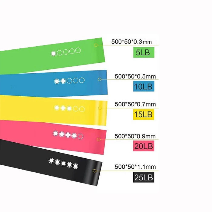 کش پیلاتس مینی لوپ تراباند مجموعه 5 عددی , یک پکیج کامل از کش های مینی لوپ است که دارای 5 مقاومت مختلف از فوق سبک تا فوق سنگین می باشد و همه ورزشکاران با هر توانایی فیزیکی بسته به نوع حرکت و اندام هدف خود , می توانند مقاومت دلخواه خود را انتخاب و به ورزش بپردازند . کش مشکی با ضخامت 1/1 میلیمتر دارای مقاومت فوق سنگین , کش قرمز با ضخامت 0/9 میلیمتر دارای مقاومت سنگین , کش زرد با ضخامت 0/7 میلیمتر دارای مقاومت متوسط , کش آبی با ضخامت 0/5 میلیمتر دارای مقاومت سبک و کش سبز ب ...